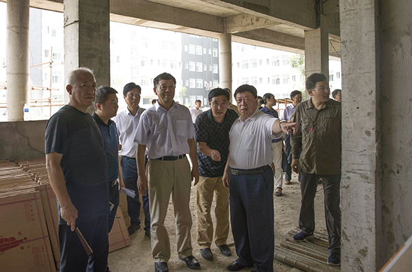 717日下午,党委书记石恒真,校长赵卫东,党委副书记尚宝平、马英,副校长刘新田、毛多斌、王新杰、方少明,工会主席李世瑛到禹州校区检查指导工作并慰问奋战在禹州校区建设工地的干部职工和施工人员。