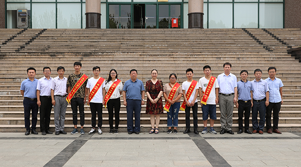 会后,校领导和相关职能部门负责人为赴边疆基层工作的毕业生送行,并合影留念。