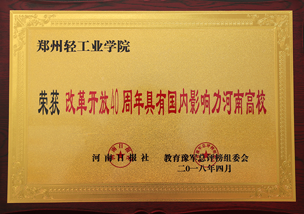 我校荣获“改革开放四十周年具有国内影响力河南高校”称号