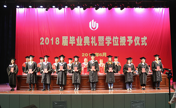 在欢快的乐曲声和现场师生热烈的掌声中,校领导先后为获得学士学位的本科毕业生代表、获得硕士学位的研究生毕业生代表援正流苏并颁发学位证书。