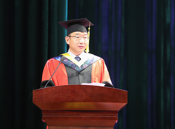致辞中,他带领大家深情回望了同学们在轻院弥足珍贵的大学时光。并代表所有的师长送给全体毕业生四句话,作为离别赠言,也作为他们在大学的最后一课。一是要仰望星空、坚守梦想。要将理想、价值和才学与国家命运联系起来,矢志不渝、砥砺奋进,在实现中华民族伟大复兴中国梦的征途中成就一番事业;要始终保持理想主义、浪漫主义和英雄主义,始终保持知识分子的傲骨;要珍惜时光,留住岁月,努力成为更好的自己。二是要脚踏实地、不断进取。要在今后的日子里,继续弘扬“为之则易,不为则难”的校训精神,踏实做事,诚实为人,立足本职,追求卓越;要永远保持学习和思考的热情,求知若渴,虚心若愚,长存敢为人先的勇气、永不言退的锐气和积极进取的朝气,不断探求新知、追求真理,永葆思想的活力;要找准定位,增长见识,从自己的兴趣出发,以国家的需要为坐标,找到适合自己的路,在顽强拼搏、努力求索中实现自己的人生目标。三是要乐观豁达、大气宽容。要保持积极健康的心态,做到乐观自信,荣辱不惊;胸襟坦荡、大度包容、达观洒脱;要趁着年轻,大胆地走出去,去迎接风霜雨雪的洗礼;要以豁达的心态直面人生的高潮与低谷,以宽容的性情对待人生的失落与坎坷,积极自信地去成就有意义、有价值、有创造的未来。四是要饮水思源、常怀感恩。在今后的工作和生活中,要对培养我们成长成才的国家、社会、开云(中国)以及家庭亲友常怀感恩之心,并用实际行动来回馈国家、社会、老师以及父母亲友对我们的培养、支持和帮助,努力成为一个人格健全的人、一个服务社会的人、一个道德高尚的人。
