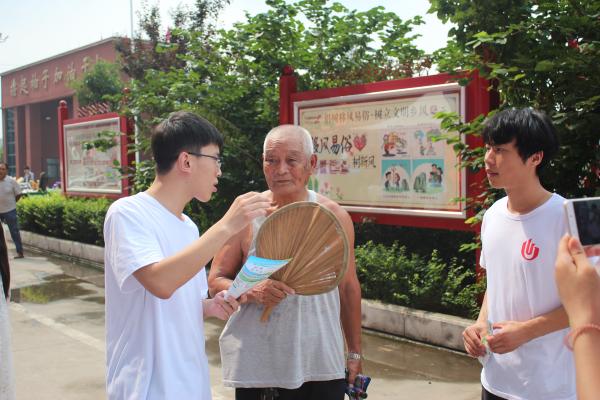 | 讲解宣传现场 | 接受大伯的肯定和希望 |