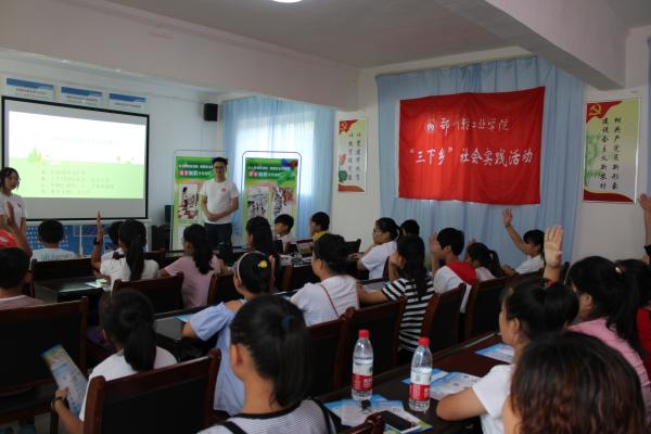 为响应国家“三下乡”的号召,以教育扶贫攻坚为主要目的,我校组建多支暑期社会实践小分队前往平顶山郏县、鹤壁市淇县、登封市大金店镇、安阳市安阳县、禹州市花石镇、洛阳市洛宁县等多地市县对乡村儿童进行教育关爱服务,为助力乡村儿童文化道德成长打下基础,更为儿童带去新视野和新思想,为乡村儿童筑梦远航、勇敢前行贡献力量。