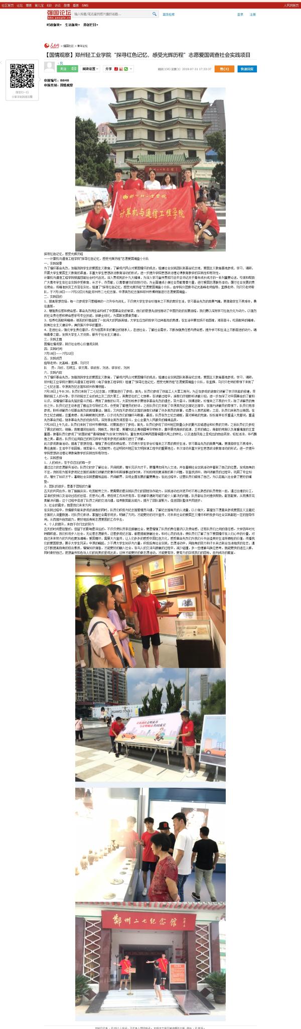4计算机与通信工程学院“探寻红色记忆,感受光辉历程”志愿爱国调查小分队人民网-强国论坛:【国情观察】郑州轻工业学院“探寻红色记忆,感受光辉历程”志愿爱国调查社会实践项目