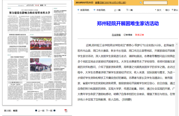 该服务队已被河南日报报道(郑州轻院开展困难生家访活动