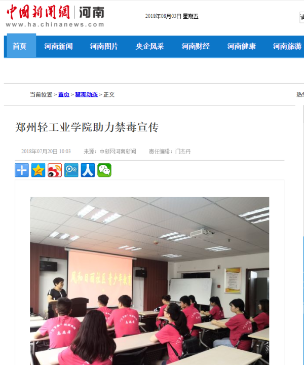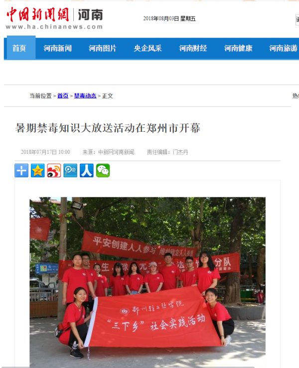 2.中国新闻网河南新闻:郑州轻工业学院助力禁毒宣传