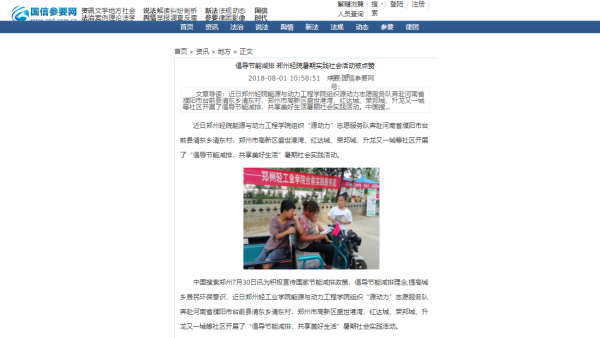 3.国信参要网:倡导节能减排 郑州轻院暑期实践社会活动被点赞
