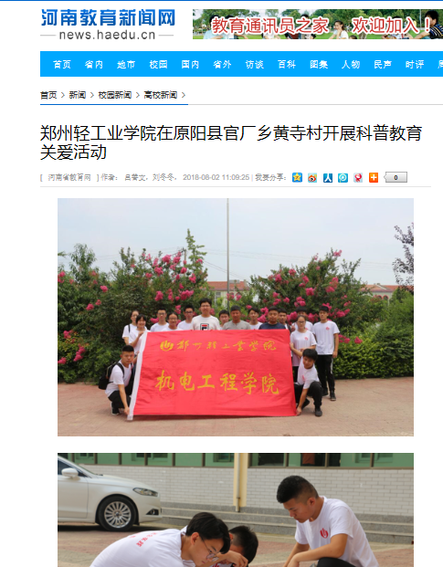 2.河南教育新闻网:郑州轻工业学院在原阳县官厂乡黄寺村开展科普教育关爱活动