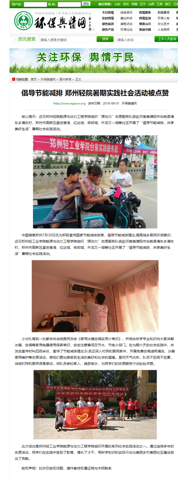 2.环保舆情网:倡导节能减排 郑州轻院暑期实践社会活动被点赞