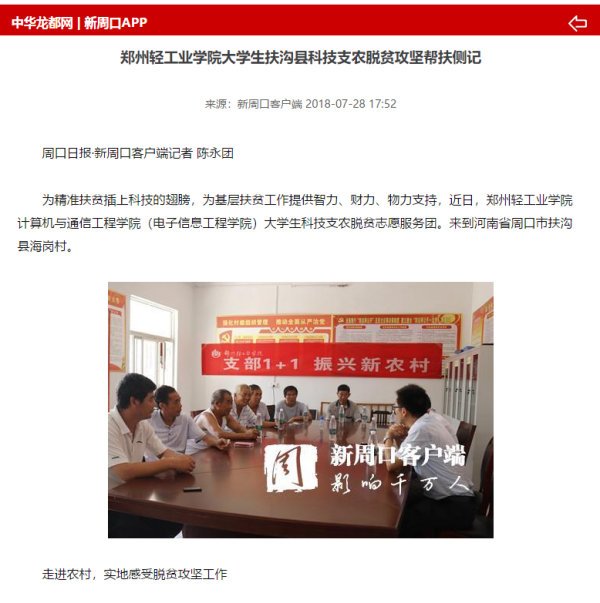 该服务队已被中华龙都网所报道:(郑州轻工业学院大生扶沟县科技农脱贫攻坚帮扶侧