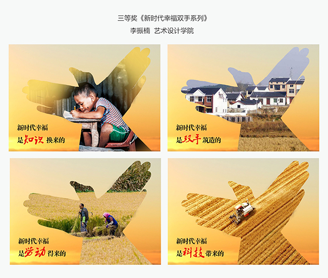 近日,河南省新闻出版广电局就2018年全省扶贫攻坚报刊公益广告大赛征集作品评选结果进行了公示,我校河南省公益广告创作基地报送的作品《“打破”贫困》获得一等奖、《福•禄•寿》获得二等奖、《新时代幸福双手》获得三等奖。