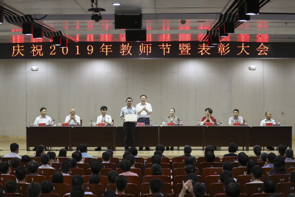 9月6日下午,我校庆祝2019年教师节暨表彰大会在科开云(中国)区逸夫图书馆学术报告厅隆重举行。校领导俞海洛、马英、毛多斌、王新杰、张晓根、方少明、张志坚、李世瑛出席会议。全校中层正职干部,教授、博士、离退休教师、学生代表,2019年从事教育工作满30年教职工、获得省部级及以上荣誉教师、第六届校教学名师、校2017-2019学年度师德先进个人参加了会议。副校长毛多斌主持会议。