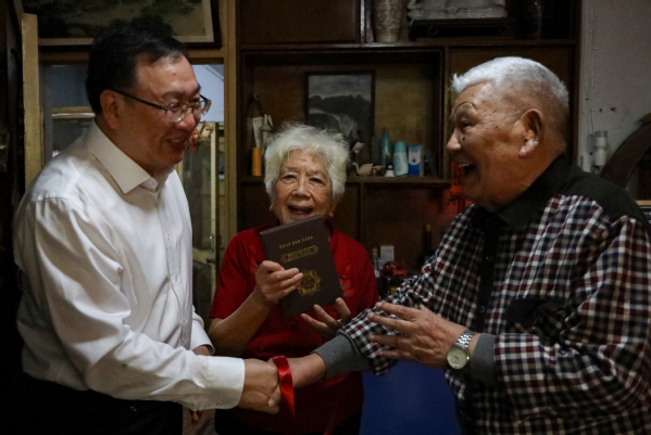 9月26日下午,校党委书记俞海洛、党委副书记马英、副校长毛多斌走访慰问建国前参加工作的老干部和老党员,将中共中央、国务院、中央军委颁发的“庆祝中华人民共和国成立70周年纪念章”送到老同志手中,并送上慰问品,向他们致以节日的问候。相关部门负责人一同参加慰问活动。