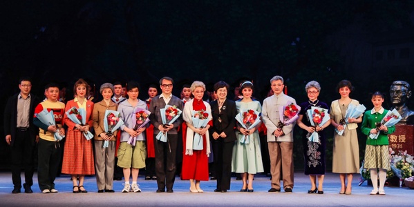 演出结束后,校领导走上舞台向演员们表示祝贺并合影留念。全场观众起立鼓掌祝贺演出圆满成功。