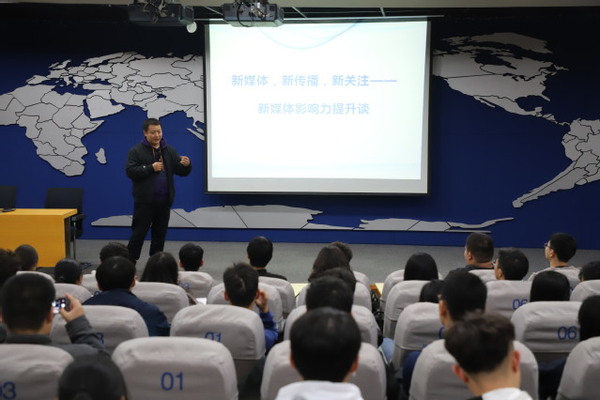 徐宁校友以 “新媒体、新传播、新关注”为主题,分为五个模块,生动形象的描述讲解为同学们对 “新媒体”的认知打开了新的大门。他从什么是新媒体、新媒体和传统媒体的区别、新媒体的技术渠道、新媒体的影响力和新媒体的传播方式这五个问题着手,详细的讲了新媒体现状及特点。徐宁校友结合自身经验,向同学们分享了他是如何从一个传统媒体人摇身一变,成为坐拥百万粉丝的自媒体大V的经验。他指出,人生最幸福的事,就是把自己的爱好作为自己的工作。他把成功经验总结为:热爱你的热爱,不忘初心;提升内力,不断提高写作技巧;紧跟时代,把握热点流量;把好政治方向,有所为,有所不为;提高参与感,用户为什么会帮你传播;做好网络化解构。