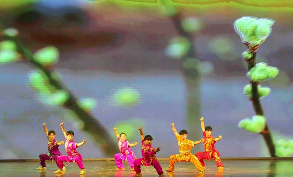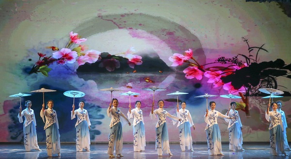 演出结束后,校领导走上舞台祝贺演出成功,并与参演师生合影留念。(通讯员:王国华)