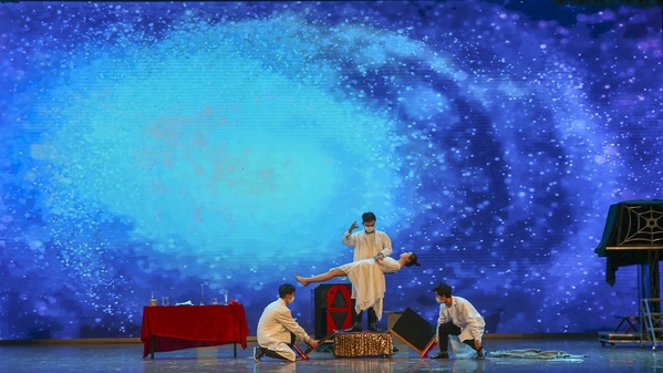 联欢会徐徐展开,各类节目逐一呈现给广大师生。《木兰诗》特别献给奋战在教学教辅一线的女教工,她们在工作岗位挥洒汗水的同时还要照顾好家庭,以实际行动践行了新时代的木兰精神;《爱,因为在心中》展现了我校辅导员的辛勤工作,他们用无私的爱为同学们遮风避雨、开路导航;《勿忘我——献给毕业十年的我们》《同桌的你》让人不禁回忆起学生时代的青春气息;魔术表演瞬息万变,令人称奇,舞蹈表演时而轻柔时而铿锵,民乐合奏、钢琴合奏的音符在礼堂内外飞扬,让人在视觉与听觉中沉醉。