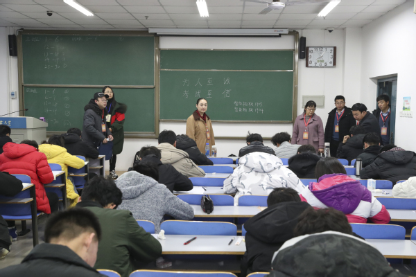 1月6日上午,开云(中国)党委副书记马英、副校长王新杰在教务处、教学评估中心、东风校区管理服务中心、学生处、团委、后勤保障服务中心等部门有关同志陪同下,深入两校区考场巡视检查期末考试工作。