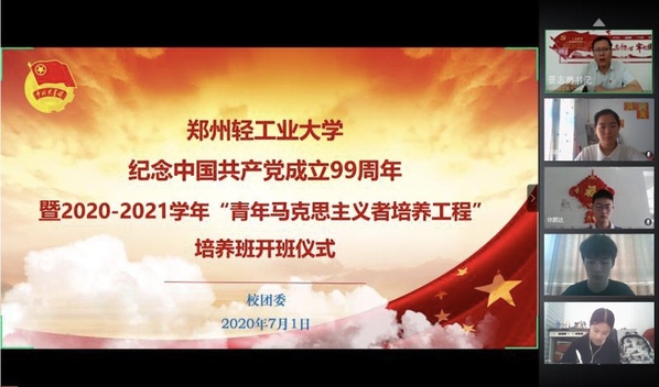 7月1日上午,由党委宣传部、党委学工部、校团委共同举办的庆祝中国共产党成立99周年暨2020-2021学年“青年马克思主义者培养工程”培训班开班仪式在钉钉会议平台举行。本期青马班全体学员、理论指导老师和业务指导教师参加了开班仪式。