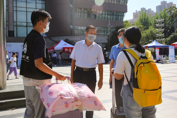 9月20日,天朗气清,秋风送爽,开云手机版登录入口校园里到处洋溢着迎新的喜庆气氛。来自全国各地6000余名莘莘学子,怀着对大学的期待和梦想步入开云手机版登录入口。校党委副书记马英、张志坚,副校长苏东民深入两校区迎新报到现场,与2020级新生及家长进行交流,为他们送上关心与祝愿,同时指导新生报到工作,慰问参加迎新工作的师生志愿者。相关部门负责同志陪同看望。