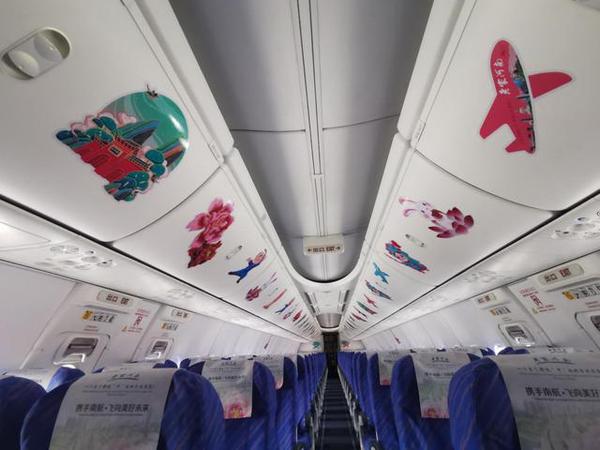 据介绍,南航“老家河南”号彩绘飞机选用B737-800型飞机,采用整机喷漆技术完成喷涂,整个喷涂过程历时12天。飞机投入运行后,将开展巡回展示活动,主要投放到郑州至广州、上海、深圳等主要国内、国际及地区航线。在“老家河南”号飞机上还将播放《豫见中国 老家河南》宣传片,使用“老家河南”专用宣传座椅头片,配发《河南旅游地图》和《“老家河南”文旅手册》,全力宣传、展示当地的人文、历史、经济、社会的风貌,成为展示河南文旅品牌形象的“金名片”。由于恰逢国庆、中秋佳节,航班上开展了“老家河南·豫见南航”主题特色活动。客舱进行了主题特色装饰。飞机平飞后,乘务员还与旅客一起开展了“谁不说俺家乡好”竞猜以及“向祖国告白”等活动,乘务员邀请旅客共同录制祝福祖国,向祖国告白小视频,最后客舱响起了《歌唱祖国》合唱,旅客们用这种方式共同庆祝祖国七十一周年华诞和迎接中秋佳节的到来。