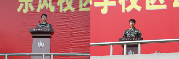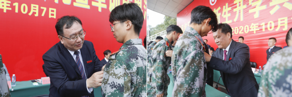校党委副书记张志坚宣读军训先进连队的表彰决定。大会对新生军训中涌现出的先进连队进行了表彰,出席大会的校领导和承训部队首长向先进连队代表和个人颁发了奖牌。校领导为2020级新生代表佩戴了校徽。