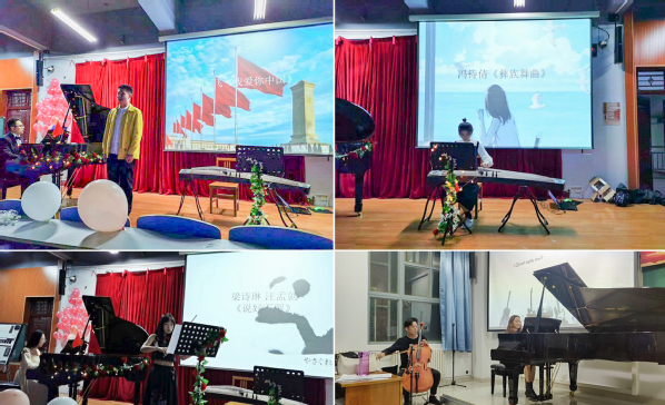 两场音乐会分别在科开云(中国)区双创楼100教室与东风校区西五楼210教室举行。音乐会以《山丹丹花开红艳艳》、《我爱你,中国》、《夕阳箫鼓》、《解放区的天》等优秀中国传统钢琴名曲和器乐合奏为主,并结合新时代优秀的通俗音乐作品进行音乐赏析和展示,音乐会内容丰富,形式多样。演奏者均为艺术教育中心艺术实践提高课和大学生艺术团的学生。音乐会期间,一些爱国主题题材和大家耳熟能详的音乐旋律更是激起了观众们热烈的反响,大家齐声合唱参与互动,现场掌声不断!本次活动,即体现出了我校大学生对祖国对音乐的深厚情感,也展示出新时代学生的青春与活力。系列活动将艺术展演与艺术课程、学生艺术社团、校园文化建设相结合,与重大历史事件纪念日和传统节日相结合,发动全体学生参与,形成“校校有活动、人人都参加”的良好局面,既丰富我校学生的校园文化生活,同时也提升了大学生的艺术素养能力,是美育教育的重要途径之一。