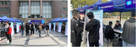本次校地合作招聘活动得到了晋江市人力资源和社会保障局、中国海峡(晋江)人才市场、吴江经济开发区人力资源服务中心等部门的大力支持。晋江人才市场组织了福建恒安集团、利郎(中国)有限公司、三六一度(中国)有限公司等27家当地名优企业参会,招聘岗位涉及电气工程、艺术设计、食品工程、财务等专业,提供职位168个,拟招聘人数900余人。吴江经济开发区组织了亨通集团、博众精工科技股份有限公司、江苏奔腾汽车科技有限公司等20家当地企业参会,招聘岗位涉及机械制造、材料化学、国际贸易、应用数学等专业,提供职位133种,需求岗位965个。招聘现场气氛热烈,秩序井然,毕业生积极与用人单位沟通交流、主动咨询岗位需求的详细情况。用人单位对我校见面会的精心准备和毕业生的综合素质、择业态度给予了高度评价。