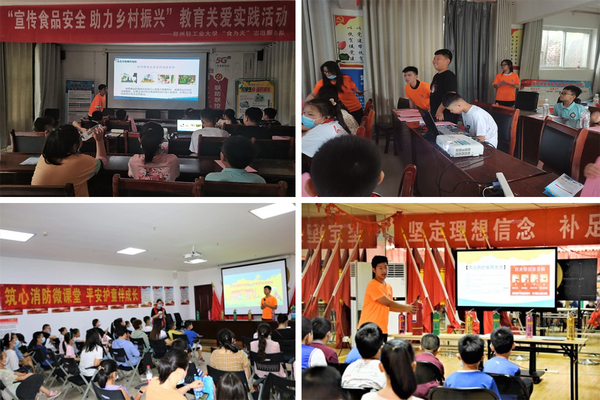 百姓日常生活中离不开食品和用电,食品和用电安全关系着百姓的生命健康和财产安全。食品与生物工程学院、建筑环境工程学院组织青年学生组成食品安全宣传普及小分队和消防安全宣传志愿服务队深入濮阳市台前县、郑州市高新区翰林社区、沟赵办事处紫锦社区,开展食品安全、消防安全宣讲志愿服务活动。志愿者们利用所学专业知识,通过发放宣传页、张贴标语条幅,结合播放视频动画的形式向村民及小朋友详细讲解了食品安全与营养知识,以及“什么是火灾?”“怎么报火警?”“生活中的消防器材有哪些”。志愿者们还教会小朋友们火灾发生时用“毛巾捂鼻法”“匍匐前进法”安全快速转移到安全区域,一旁的家长们纷纷竖起了大拇指为志愿者和小朋友们点赞。
