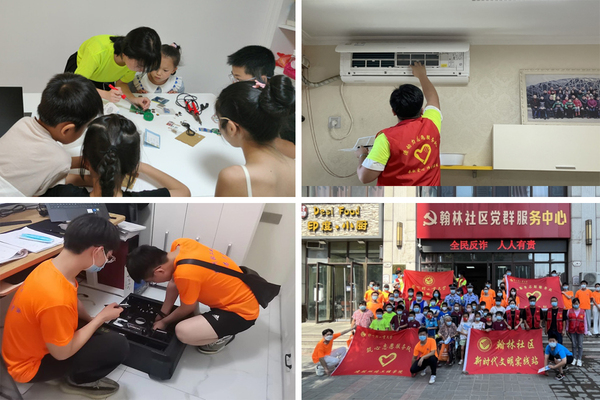 机电工程学院、计算机与通信工程学院、软件学院、能源与动力工程学院、建筑环境工程学院利用所学专业特长组成志愿服务队,深入长垣市今典小区、郑州翰林社区党群服务中心、翰林国际城孟园、沟赵办事处紫锦社区党群服务中心、万科城紫兰苑及团队所在家乡社区或村组,广泛开展科普宣传、电脑维修、软件升级、家用电器节电知识宣讲等主题志愿服务活动,活动中,志愿者们分工协作,配合默契,将所学专业知识转化为通俗易懂的语言,耐心地为群众解决生活中遇到的困扰或难题。活动期间虽烈日当空,但大家纷纷表示将课堂所学理论知识用于实践解决百姓难题,很有意义,再苦再累也值得。