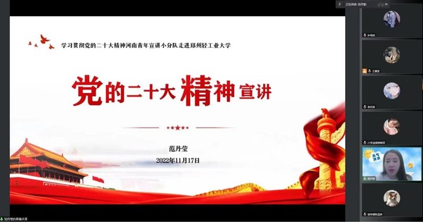 前期,我校六名老师组建成两支学习宣传贯彻党的二十大精神河南青年宣讲小分队,参加了为期3天的河南共青团学习贯彻党的二十大精神青年宣讲骨干专题培训班,宣讲小分队成员通过线上形式开展了集体备课、交流研讨,为进一步做好宣讲工作奠定了坚实基础。