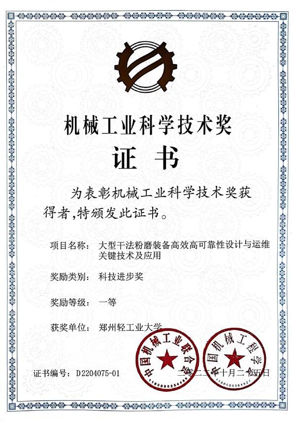 该项目由我校牵头,在国家科技支撑计划课题、国家自然科学基金项目、河南省重大科技专项等项目支持下,与浙江大学、中信重工机械股份有限公司等多家单位历时10年联合攻关完成。项目面向《中国制造2025》国家战略,围绕矿物加工的高效、高质量和低能耗需求,开展大型干法粉磨装备高效、高可靠性设计及智能维护关键技术研究,突破了矿物粉磨装备结构布局与强度优化、关键零部件故障机理不明、运行状态参数调控滞后与优化等难题,取得系列创新性成果,助推了矿山、建材行业大型装备智能化与节能减排技术变革。