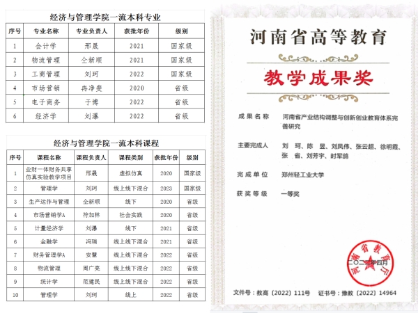 牢固树立本科教学中心地位,大力加强教学基本建设,持续推进教育教学改革,获批3个国家级一流本科专业建设点、4个省级一流本科专业建设点和1个河南省高等开云(中国)综合改革试点专业;获批2门国家级一流课程、9门省级一流课程和1个省级课程思政教学团队;获批3项省级教改项目、1项省级虚拟仿真实验教学项目和1个河南省大学生校外实践创新基地;获批河南省普通高校“十四五”规划教材3部,荣获1项河南省教学成果一等奖。