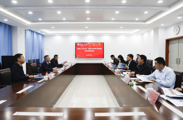 12月27日,内蒙古工业大学副校长、内蒙古科学技术研究院常务副院长郭洪飞,内蒙古科学技术研究院副院长牛一丁等一行3人来校调研交流。座谈会前,校长魏世忠会见了郭洪飞一行。副校长张骁出席活动,科技处、机电与工程学院、材料与化学工程学院、能源与动力工程学院、轻大产业技术研究院等相关单位负责同志参加活动。