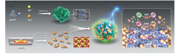 近日,材料与化学工程学院杜淼教授和张治红教授团队针对电催化产氨和产氢存在的催化剂活性低、稳定性差和转化机理不清晰的问题,在材料和能源领域Top期刊《Advanced Science》和《Small》上发表高水平论文。异质结工程在半导体器件领域具有广泛的应用,通过利用不同材料的界面结构可实现材料的微观调控和优化,充分发挥不同材料的特性。受此启发,杜淼教授团队利用异质结工程,通过利用半导体金属框架材料(MOF)和硼纳米片形成p-n型异质结,并以等离子体处理方式在异质结材料中引入缺陷,从而形成高效电催化氮气还原的催化剂,实现的高氨气产率(28.26 ± 2.27 µg h−1 mgcat.−1)和法拉第效率52.92 ± 1.83%处于国际领先水平。该项工作发表在Adv. Sci. 2023, 10, 2205786(影响因子15.1,中科院一区,TOP期刊)。论文链接:https://onlinelibrary.wiley.com/doi/10.1002/advs.202205786