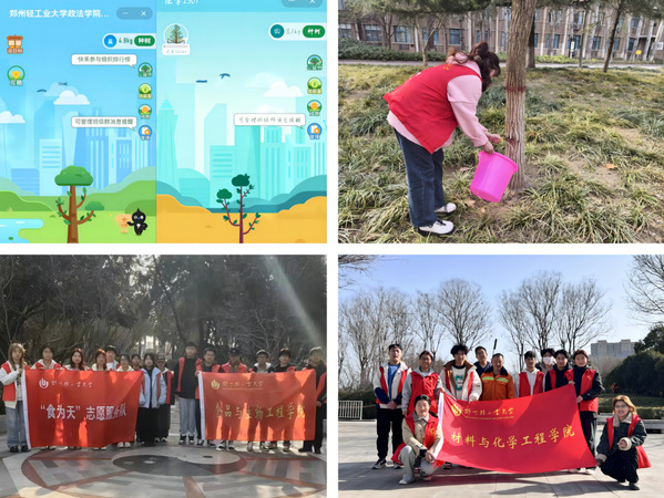 政法学院充分利用线上平台,组织学生开展“指尖上的绿色行动”线上植树活动,通过节能减排、绿色出行等方式参与网络植树,将低碳环保理念融入学生日常生活。材料与化学工程学院、食品与生物工程学院、软件学院、环保协会等组织学生志愿者分别在须水河、紫荆山公园等地开展绿色环保志愿服务活动,通过捡拾垃圾、清扫落叶、浇灌树木、劝阻不文明行为等方式,为社会环境治理贡献青春力量。青年志愿者协会开展“为校园增添一抹绿”志愿服务活动,志愿者们拿着水桶、扫把、垃圾篓,为校内树木浇水、清除杂草和垃圾,用实际行动践行绿色梦想,助力美丽校园建设。