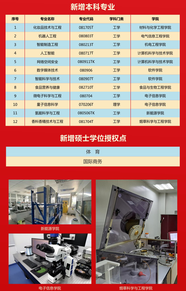 优化学院专业布局,调整组建3个工科学院,新增12个本科专业、2个硕士学位授权点。