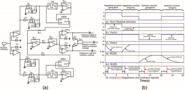 图2 情绪模块(a)情绪模块结构图;(b) 情绪的生成与恢复过程仿真图