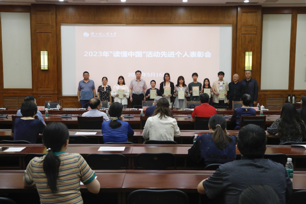 与会领导为2023年“读懂中国”活动获奖学生代表颁发证书