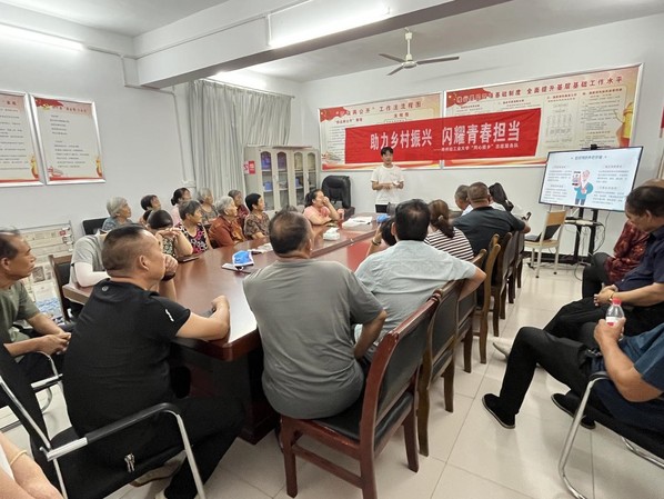 食品与生物工程学院“同心振乡”志愿实践队前往河南省洛阳市新安县上河社区和李子沟村开展了科普助农实践活动。实践队员们为了帮助乡村普及食品安全知识,为当地中老年群体举办了一场别开生面的食品安全宣讲活动。宣讲成员通过图文并茂、生动形象的PPT展示,向村民们深入浅出地讲解了食品添加剂的潜在风险、发霉变质食品及农药残留的危害,强调霉菌对人体的负面影响以及霉变食品必须及时丢弃的重要性。他们通过具体案例列举了常见夏季食品中毒事件,介绍了正确选购和储藏食品的方法,结合中国居民膳食指南,引导村民们学会合理搭配、健康饮食。宣讲过程中,村民们听得十分认真,不时点头表示赞同。“以前我们遇到有霉斑的食物会因为心疼而舍不得扔掉,今天听了讲解,才知道霉变的食物对我们的健康有多大的威胁。”一位参加活动的村民感慨地说。看到自己的专业知识真正帮助到村民们,实践队成员们收获满满的幸福和快乐。