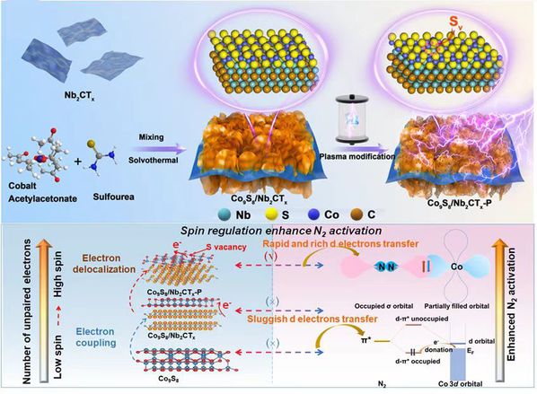 Co9S8/Nb2CTx-P电催化剂的合成及自旋结构调控策略促进氮气活化