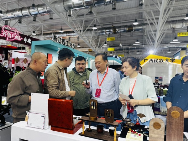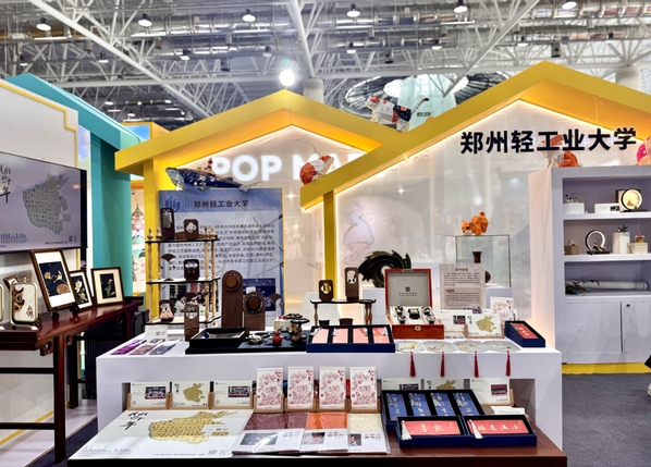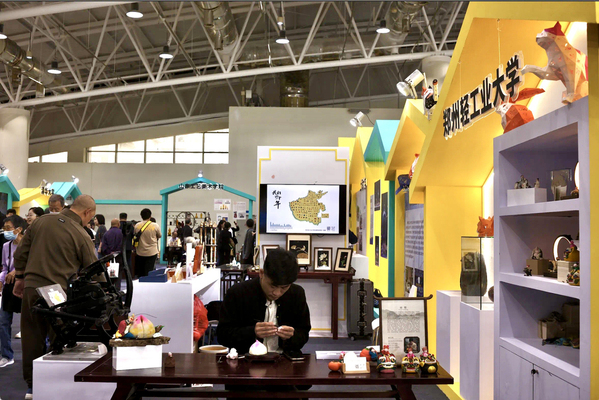 在非遗博览会主会场的“非遗新创意”版块,展示了我校非遗首饰、非遗文创、非遗健康三大类研培成果,共计12个项目、80余件非遗产品。麦秆画手表、立体剪纸灯、面塑香薰、钧瓷首饰、大漆葫芦、洛绣胸针、凸版印刷等得到了文旅部、河南省文旅厅等各级与会领导的大力肯定。此外,我校在展会现场特别设置了传承人现场互动、非遗研培AR纪念卡片、研培十年凸版印刷体验等三处互动体验环节,深受群众喜爱。