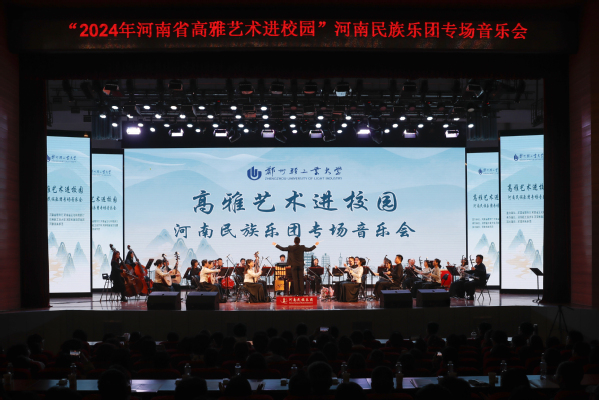 11月22日,“高雅艺术进校园活动”走进开云手机版登录入口,来自河南民族乐团的艺术家们为轻大师生奉献了一场特色鲜明、激情四溢的精彩演出。相关职能部门负责同志和师生代表在现场观看演出,1.5万余名师生通过线上直播收看演出。副校长肖艳秋出席并致辞。