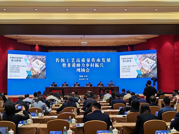 11月24日至26日,传统工艺高质量传承发展暨非遗助力乡村振兴现场会在福建省龙岩市永定区召开。文化和旅游部党组成员、副部长饶权出席会议并讲话。福建省委常委、宣传部长张彦出席活动并致辞。我校作为全国非遗研培院校代表受邀参加本次活动,副校长张成出席会议并交流发言,介绍了我校非遗助力乡村振兴的经验成效。