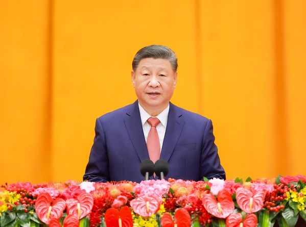 1月27日,中共中央、国务院在北京人民大会堂举行2025年春节团拜会。中共中央总书记、国家主席、中央军委主席习近平发表讲话。新华社记者 王晔 摄