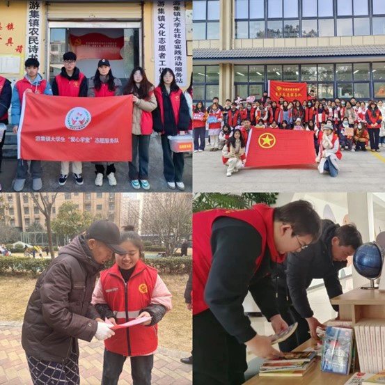 电气信息工程学院、电子信息学院等返乡学生走进基层乡镇社区开展道路安全宣传、流动书箱送家门、新年送春联、困难民众帮扶等志愿服务。机电工程学院返乡学生走进社区开展安全用电知识、文明守法出行、防范电信诈骗等宣讲活动。外国语学院学生结合真实案例宣传反诈知识,发放反诈手册,提高居民反诈意识。