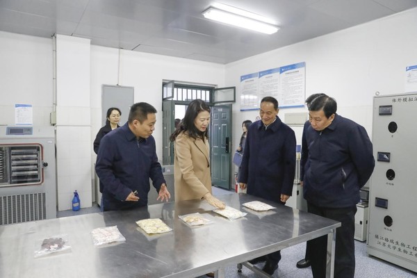 在冷链食品加工与安全控制教育部重点实验室,霍金花参观了冷杀菌平台、食品安全快速检测、冷链食品加工等实验室,了解实验室建设情况、科学研究、应用转化等相关情况,与相关人员进行深入探讨。