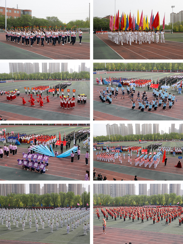 在激昂的旋律中,国旗护卫队以铿锵有力的节奏率先入场,翻涌的彩旗队伍紧随其后,鲜艳的国旗、校徽旗帜与各院系标识在风中猎猎招展。各单位代表队身着特色服装,口号声震云霄,步伐铿锵划一,以昂扬之姿列队通过主席台和观众看台,接受检阅与喝彩。全校各单位教职工和学生代表分别进行了健身气功八段锦和团体项目表演。