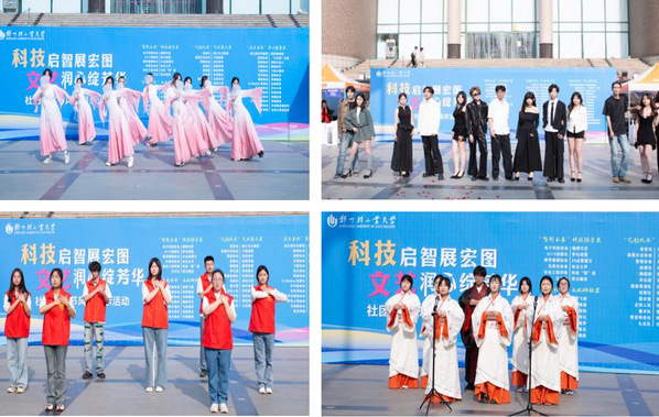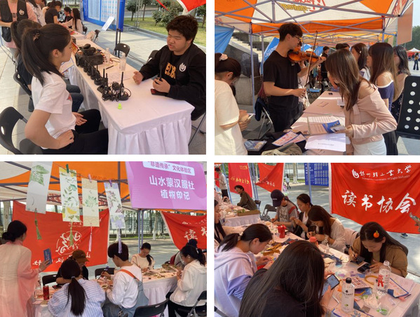 在“智创未来”科技探索区,“锡焊巧匠”“梦幻成图”“电台之声”等活动,通过焊接技术、人工智能技术以及电台通联体验,激发了同学们的科技创新热情,展现了青年学生的科技创新能力。在“非遗传承”文化体验区,“笔墨飞扬”“智弈棋盘”“书香签韵”“植物印记”“飞花逐梦”等活动,通过书画创作、棋艺对决、非遗手工制作和诗词接龙,让同学们“沉浸式”感受中华优秀传统文化的博大精深,促进了传统文化的传承与弘扬。在“艺韵风华”艺术展示区,“舞动青春”“音浪舞台”“红毯风尚”“绝对音感”“指尖幻影”等活动,营造出一片绚烂的“艺术海洋”,为同学们提供了展示自我艺术才华的广阔平台。在“活力启航”身心健康区,“蛇形跑体验”“排球小达人”“颠球高手”“飞盘小旋风”“武林风云”“情绪解密”等活动,让同学们在参与游戏中放松心情,释放情绪,助力同学们健康成长。此外,现场还设置了节目快闪展示区域,各学生社团纷纷拿出自己的“看家本领”,古典舞蹈、歌曲联唱、诗歌朗诵、花式轮滑等众多精彩纷呈的特色表演令人目不暇接,周围掌声与呐喊声连绵不断、此起彼伏。