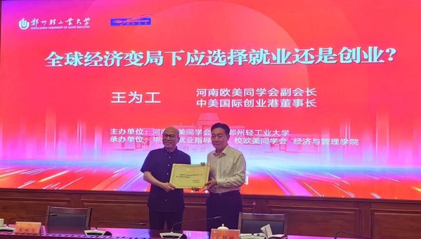 河南欧美同学会副会长、中美国际创业港董事长王为工以“全球经济变局下应选择就业还是创业”为主题,为师生作了专题报告,并与师生交流互动、答疑解惑,气氛热烈,师生受益良多。